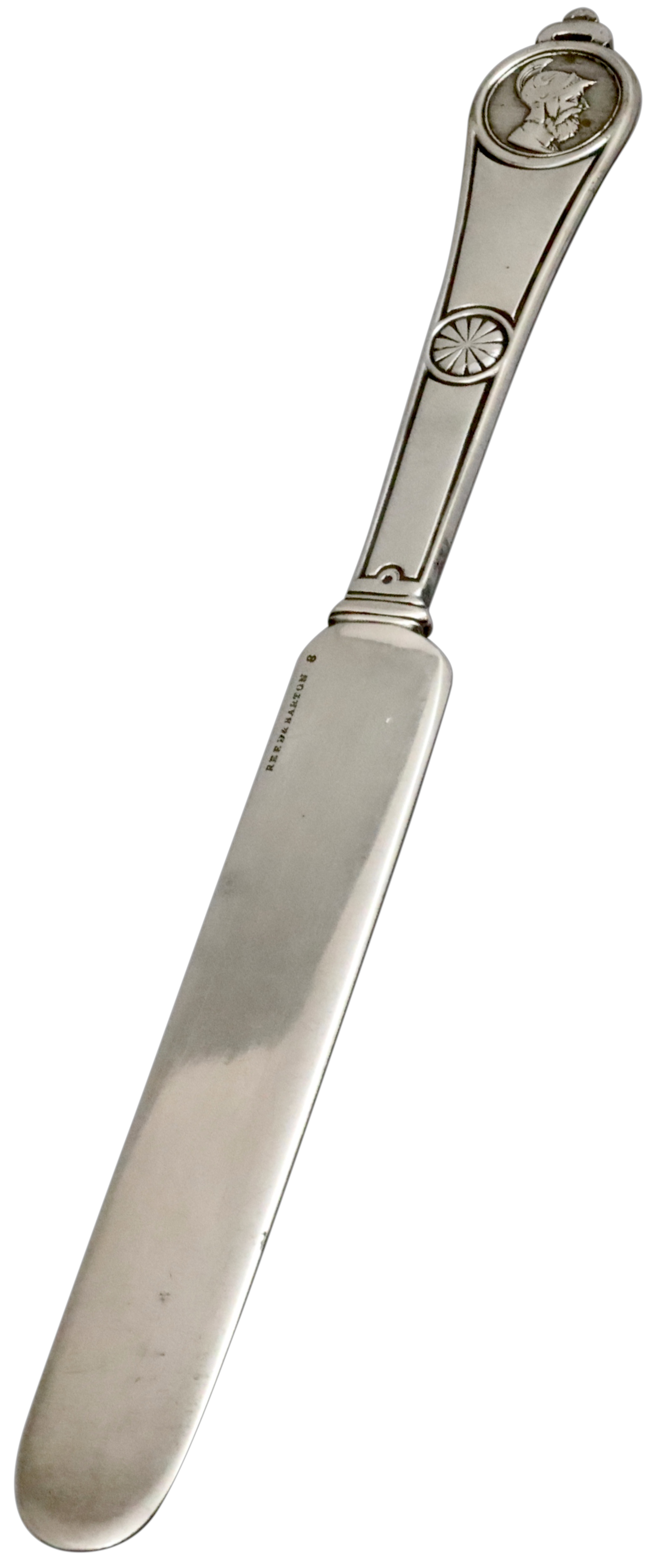 Reed & Barton switched form reselling flatware made by other manufacturers to producing their own in 1868, with this first pattern. It was a safe bet, as similar flatware made by other companies was already popular, and the significant investment in expensive tooling and machinery proved wise. The success of Roman Medallion led to the development of many more successful flatware patterns.