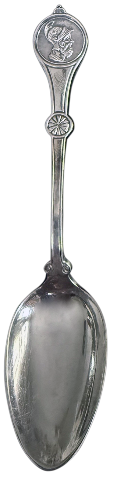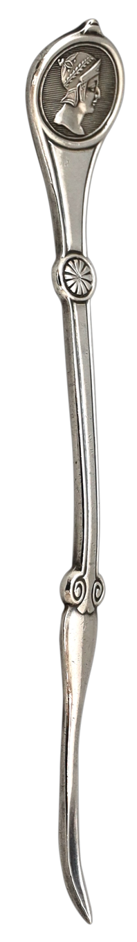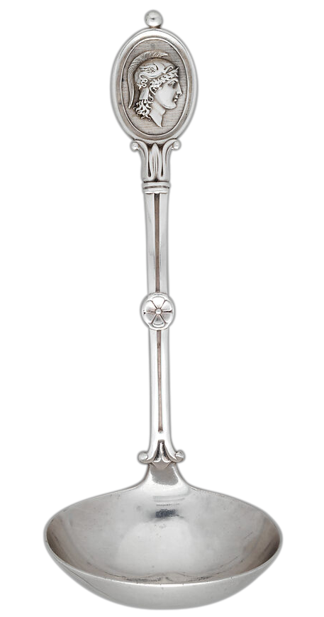 Popular souvenirs from European travels included ancient Roman coins; the development of Medallion flatware offered the popular theme of antiquity by repurposing it for modern industry and manufacturing.
