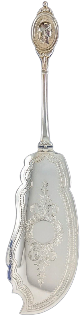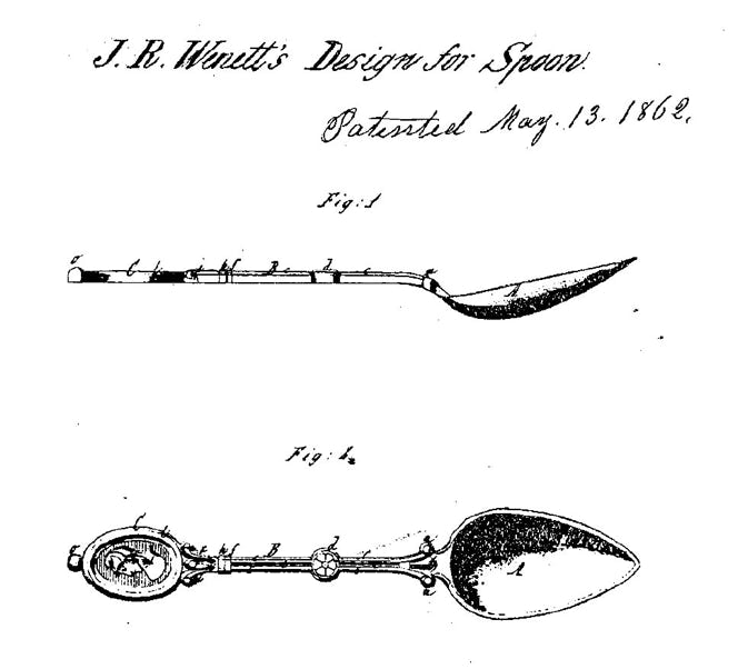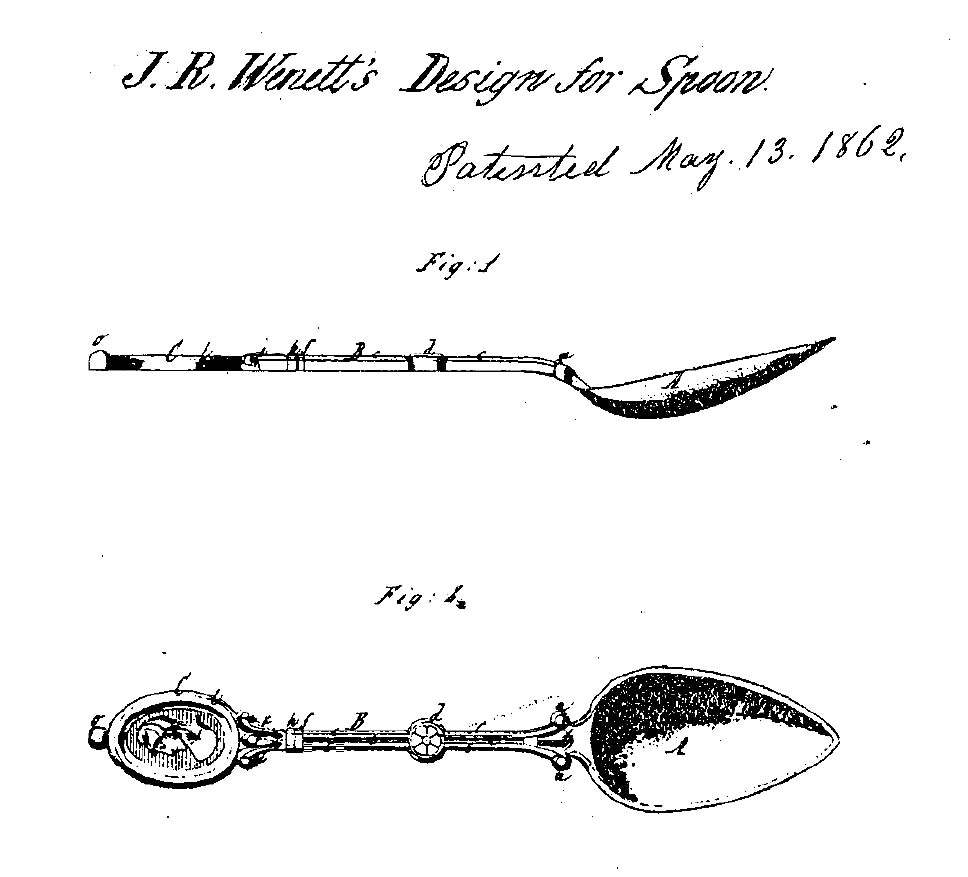 New York silversmith John Wendt held an earlier 1862 patent for a version of this design, and Gorham & Co. held an 1864 patent for yet another version. By the 1870s, almost every company making silverware offered their own subtly different version this popular design. Eventually, there were more than 30 variations of “Medallion” flatware.