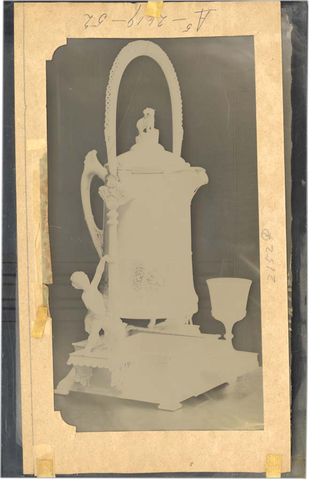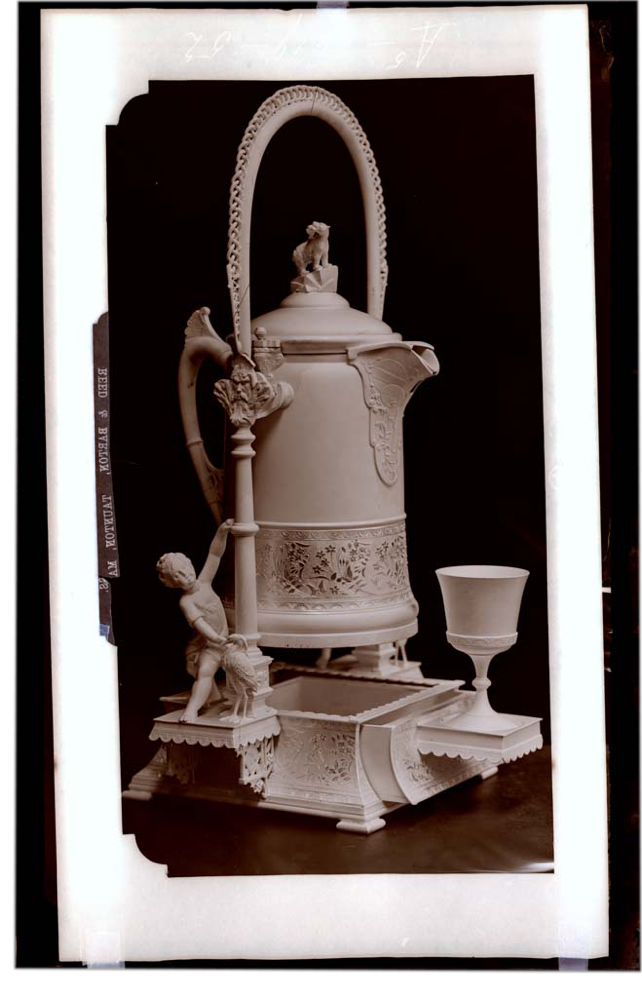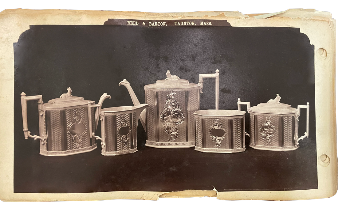 Through the 1860s Reed & Barton developed an entire photography department and used photography to record designs, produce salesmen’s catalogs, and create images to transfer into engravings for printing in advertisements and catalogs.