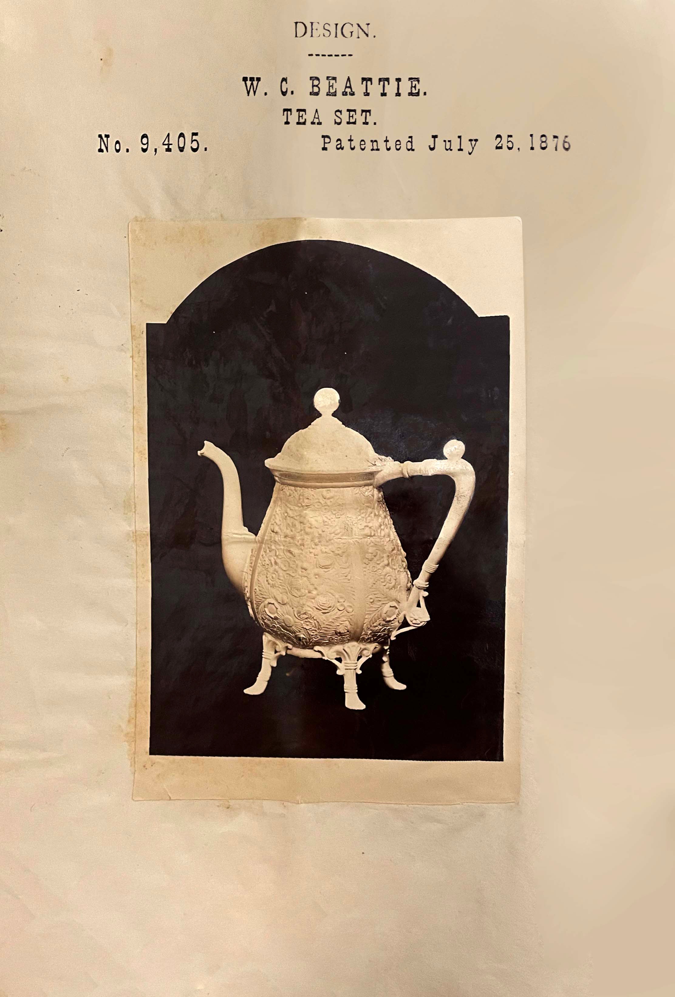 However, the design, even though it references existing creations, was considered novel enough to qualify for a design patent, and the teapot for this set was granted US Design Patent number 9,405 on July 24, 1876.