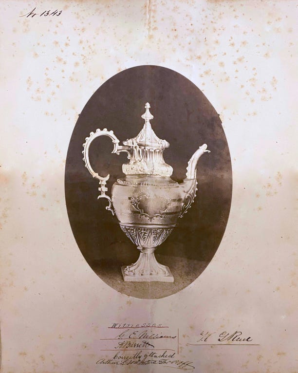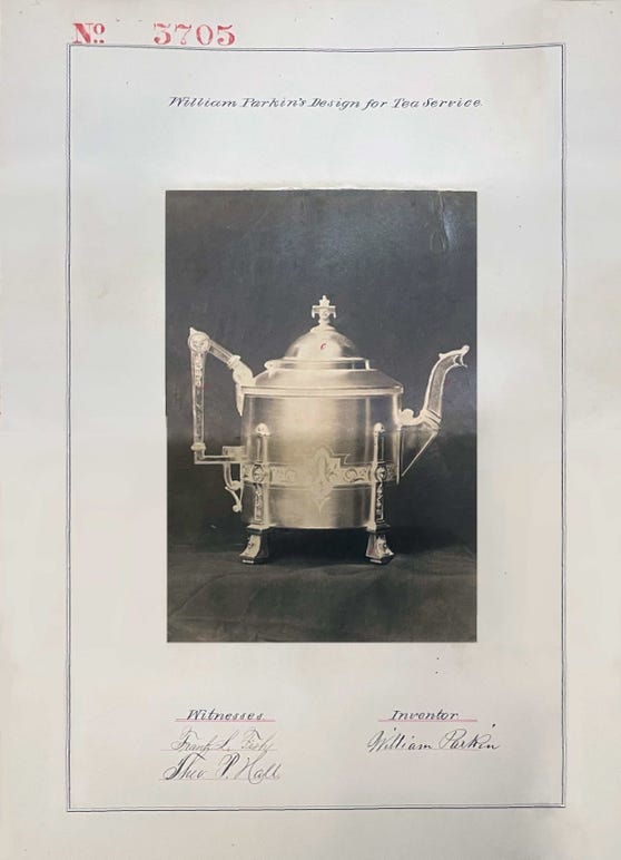 Reed & Barton also used photographic prints for their patents as early as 1869, which was unusual, as the majority of patent applications showed designs with line drawings.