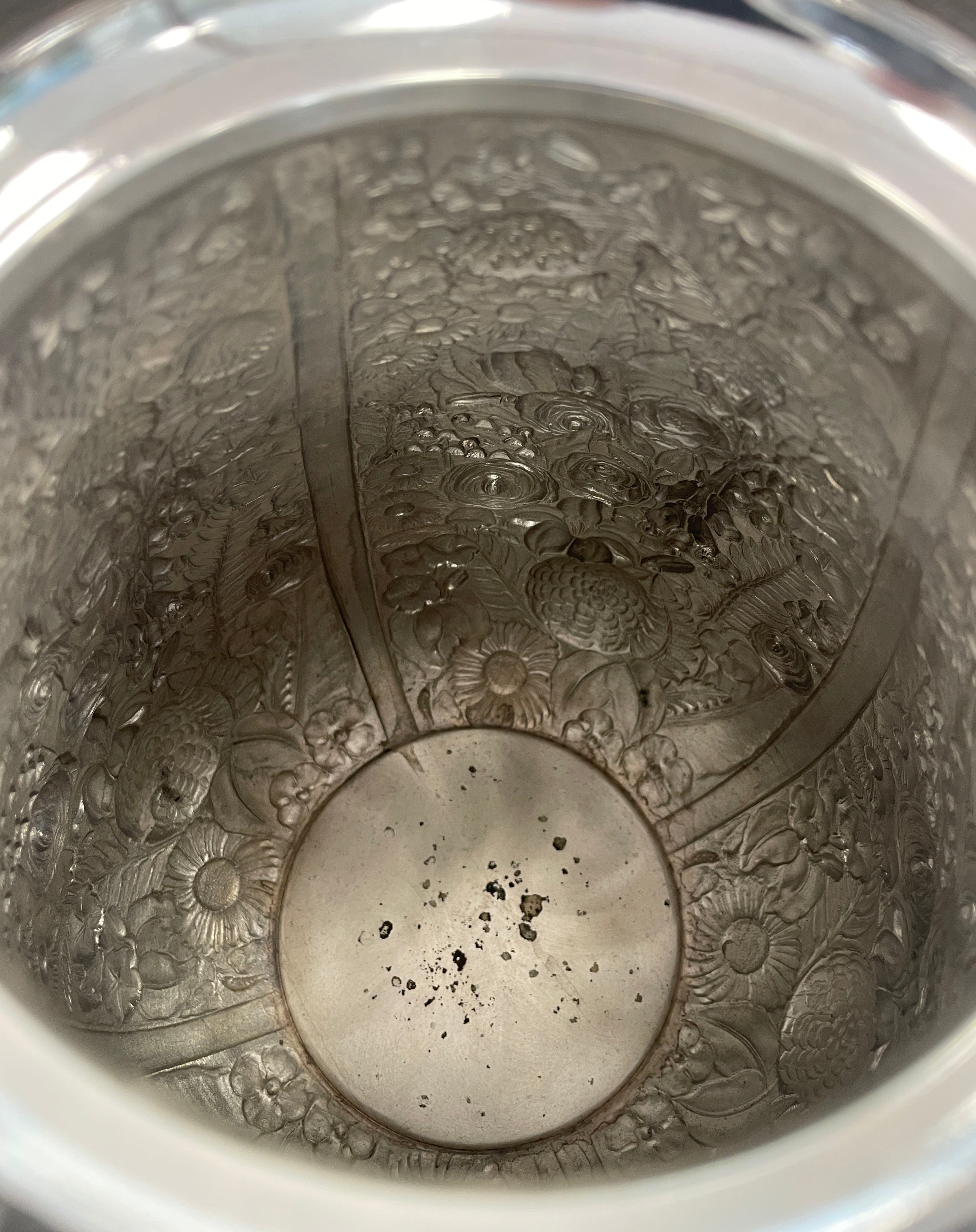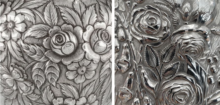 Almost immediately, there were many other Baltimore silversmiths producing their own version of Kirk’s floral repoussé silver.