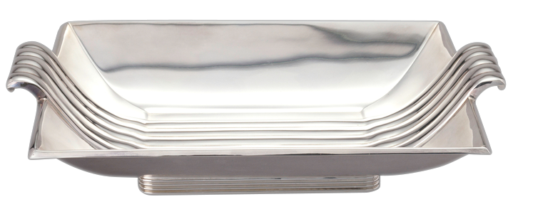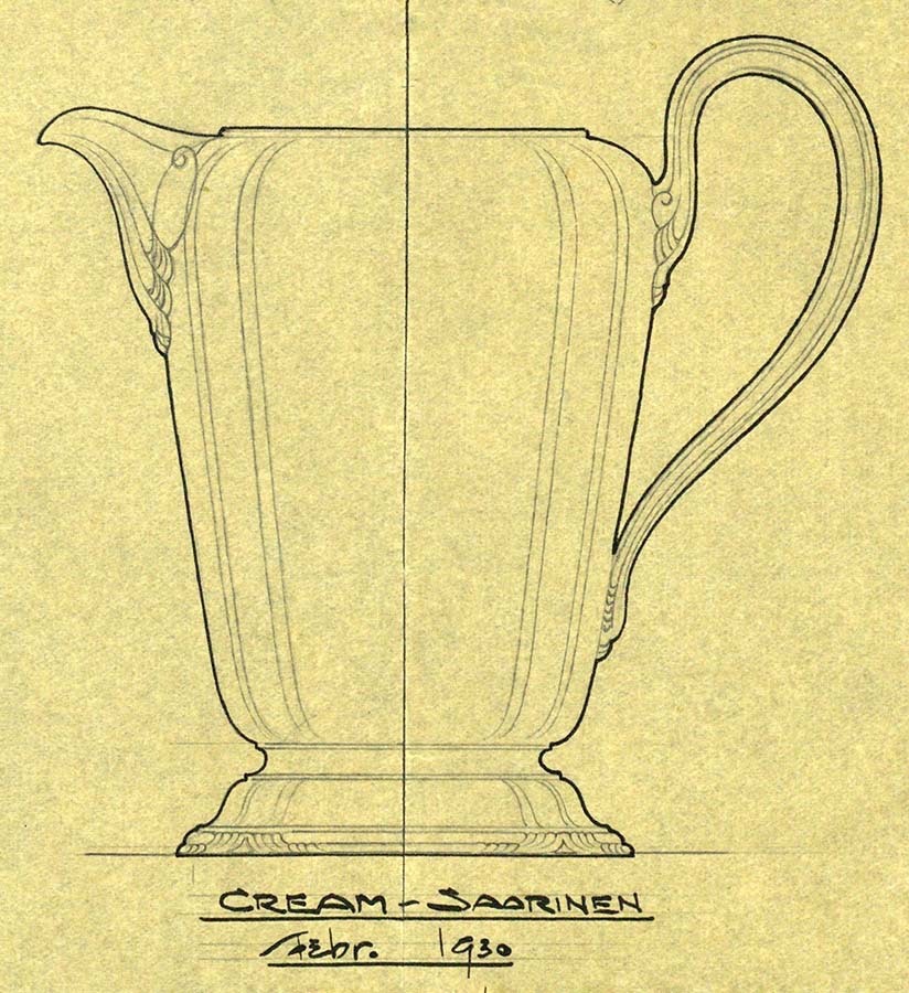 Reed & Barton purchased New Jersey-based sterling manufacturer Dominick & Haff in 1928 and with the company came their successful Pointed Antique pattern. The 1920s also saw a new era of design at Reed & Barton as trained professionals entered the design department. George Turner graduated from Rhode Island School of Design, and August Miller was poached from the design department at Tiffany. Both designers stayed on well into the 1940s, giving Reed & Barton graceful entry into the modern era. In the 1930s independent designers, including Eliel Saarinen and Belle Kogan, were hired to bring new ideas into the company.