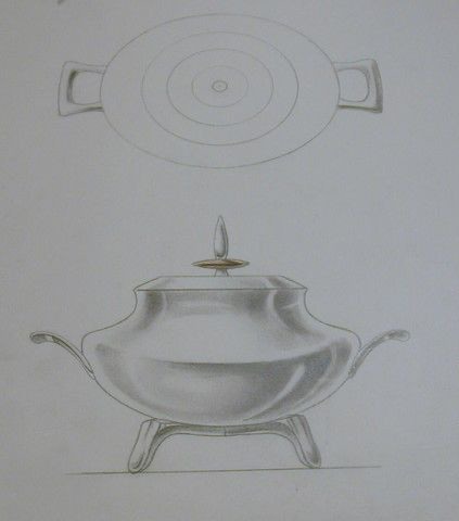 In addition to Reed & Barton objects in the museum collection, The Yale University Art Gallery houses a collection of design drawings created by Robert Ramp who donated them in 2003. Ramp studied industrial art at Pratt Institute in New York City and designed for Reed & Barton in the 1950s.